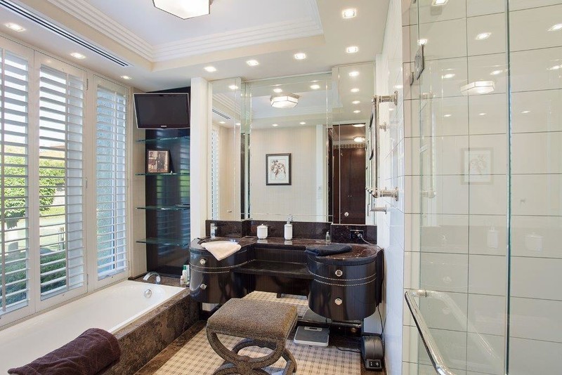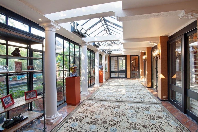 The north facing gardens are absolutely exquisite with its Moroccan style BBQ area, elevated terrace, natural style in-ground pool, a gazebo and a grand pavilion that doubles as a 6-car garage when not entertaining which opens out to the tennis court and a granite bar area and a poolside powder room.