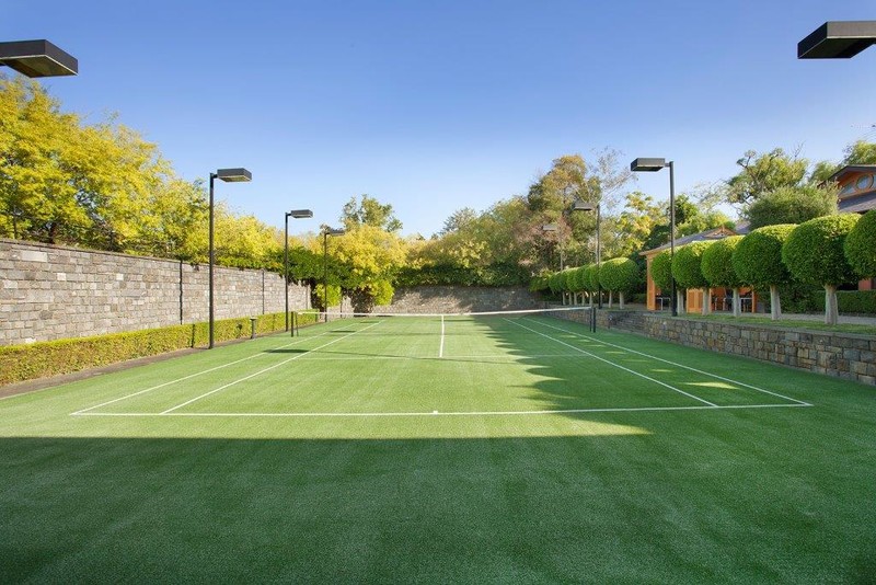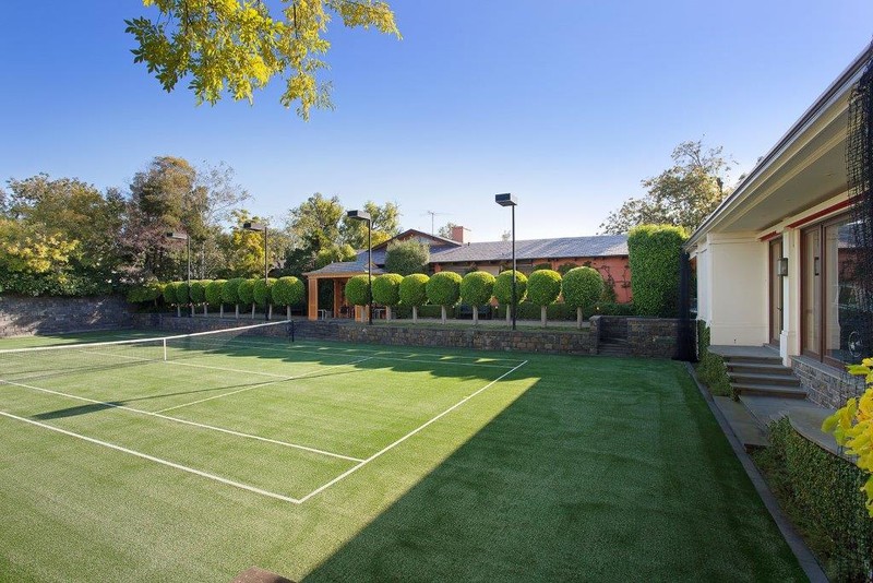 Superbly presented with style, refinement and superior detail, this premier solid brick home has all the hallmarks of architectural brilliance with its raked ceiling, central north facing entertaining zone and rooms providing intimate social areas around the pool and a beautiful north-south mod grass flood-lit tennis court surrounded by bluestone terraced walls.