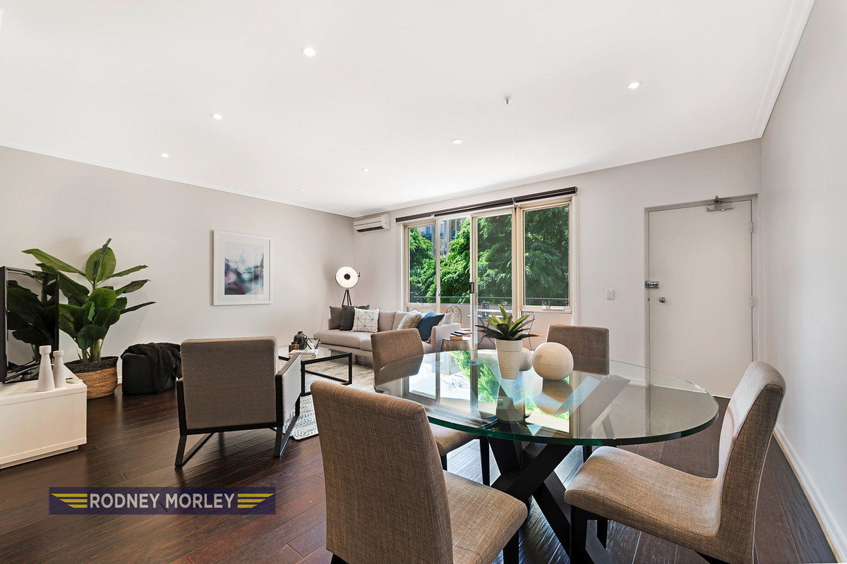 Overlooking the Parisienne style gardens and the garden pond, it’s complete with timber floors, R/C air conditioning, ceiling fan, video intercom, a communal gym and secure undercover parking via Leggetts Lane.