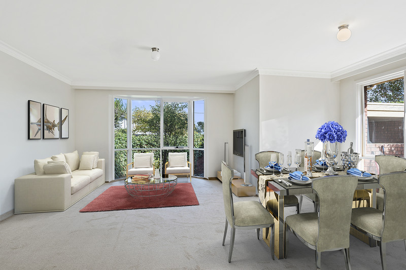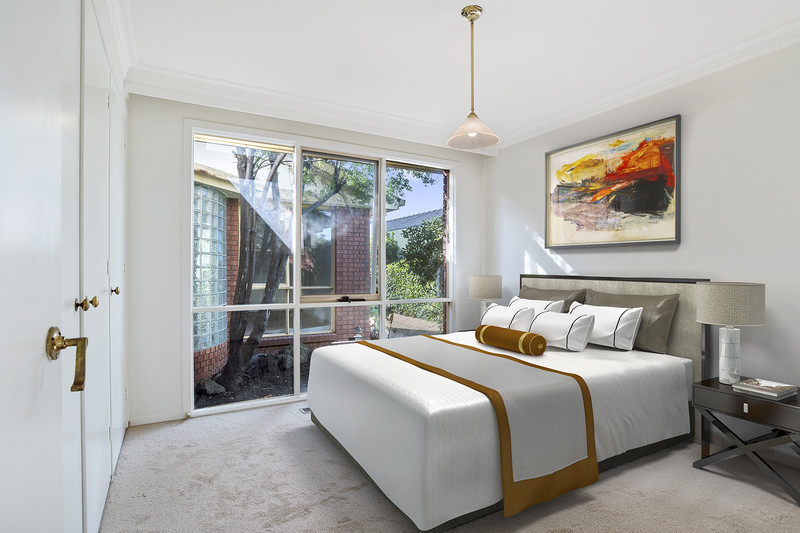 With two living zones this spacious sun filled unit includes; a light and bright entry hall, powder room with shower and skylight, spacious lounge/dining room overlooking a private front garden. Family size timber kitchen with meals area, 3 double sized bedrooms all with built in robes (main with ensuite). Large central family bathroom, and a feature glass brick covered central wall facing into a second outdoor courtyard. Includes double garage.