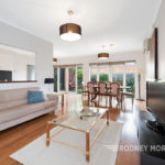 Opening out via two sets of French doors to a beautifully landscaped northwest garden with plenty of room to relax in the sunshine, catch up with friends or indulge your green thumb, the low-maintenance layout showcases a generous living and dining room and a bright family/meals area beside a practically planned kitchen equipped with stainless-steel appliances, breakfast bar, on-trend black subway tiled splashbacks and a wide servery through to the living/dining room.