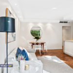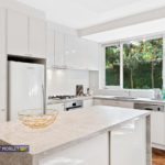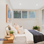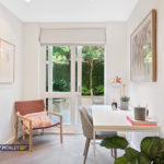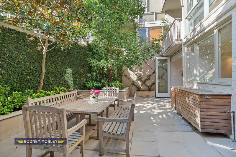 Bi-fold doors open to a breathtaking alfresco courtyard with Little Gem magnolias creating a private canopy of greenery with an undercarriage of gardenias bringing scented beauty to the private outdoor space. There’s a fitted bench with gas connections for a BBQ, and serves as a fabulous bench space when entertaining outdoors.