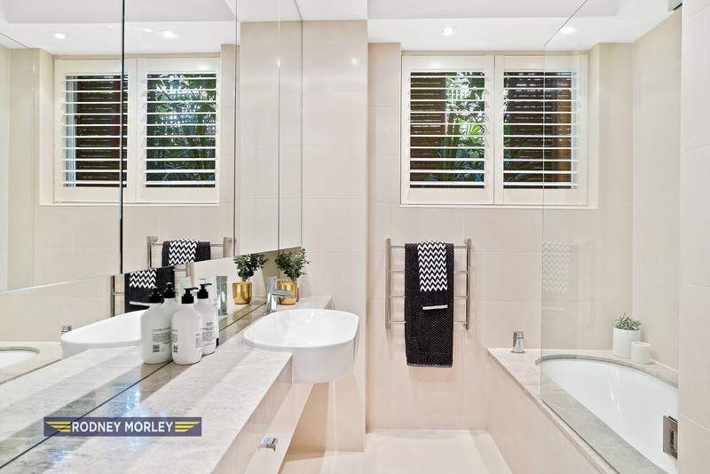 Rich with European Oak parquetry floors, this sparkling sensation features a superb entry hall, 3 stylish bedrooms (BIRs), a luxury travertine kitchen with Bosch appliances overlooking the casual living & dining area (concealed TV unit), an opulent bathroom with bath and travertine vanity, and a European laundry, again finished in travertine.