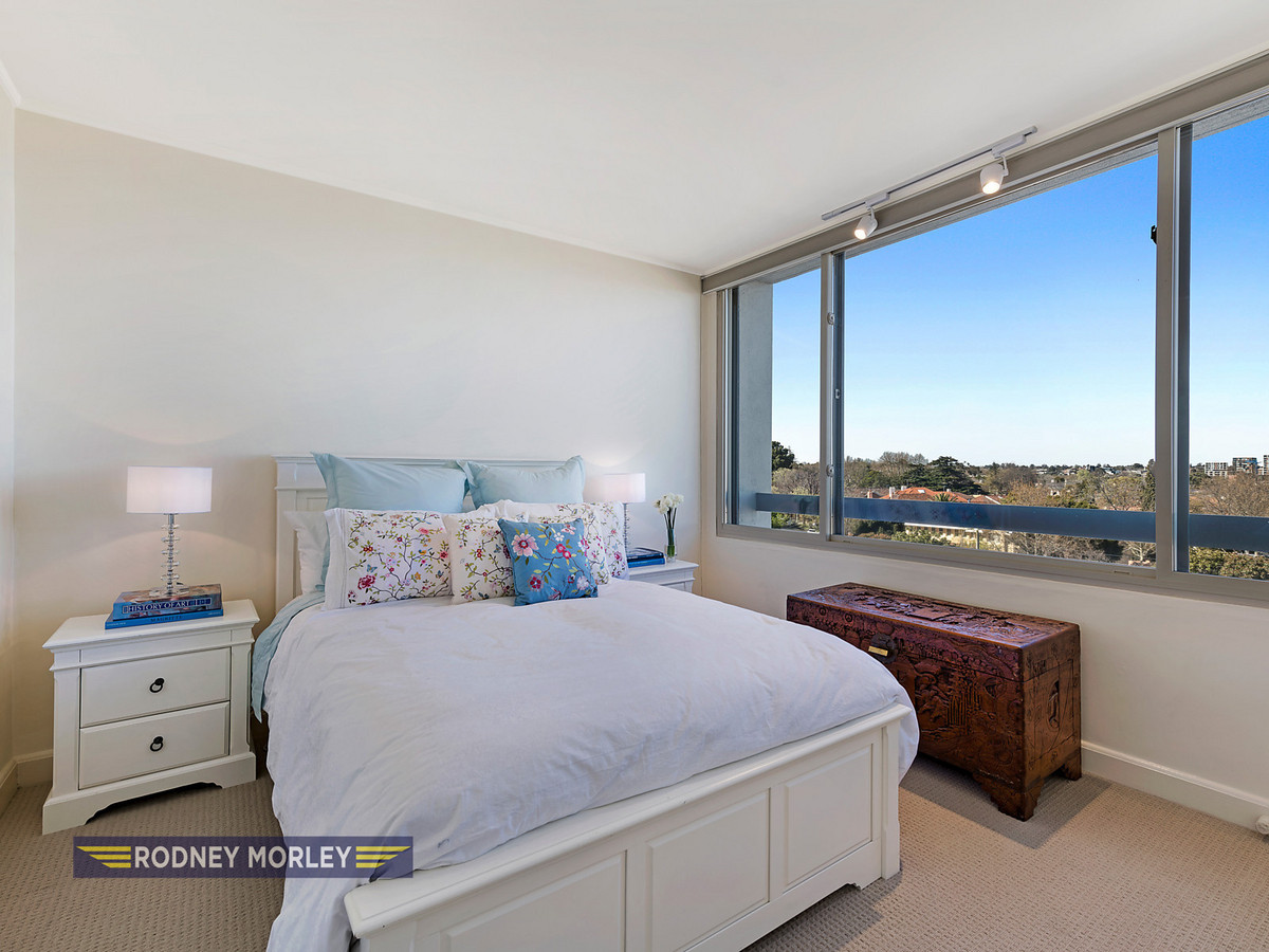 Enjoy sweeping panoramic views of the Dandenongs and the beautiful bay from this very large contemporary elegant 2 bedroom + study 2 bathroom 5th floor security apartment.