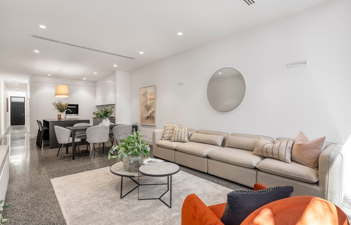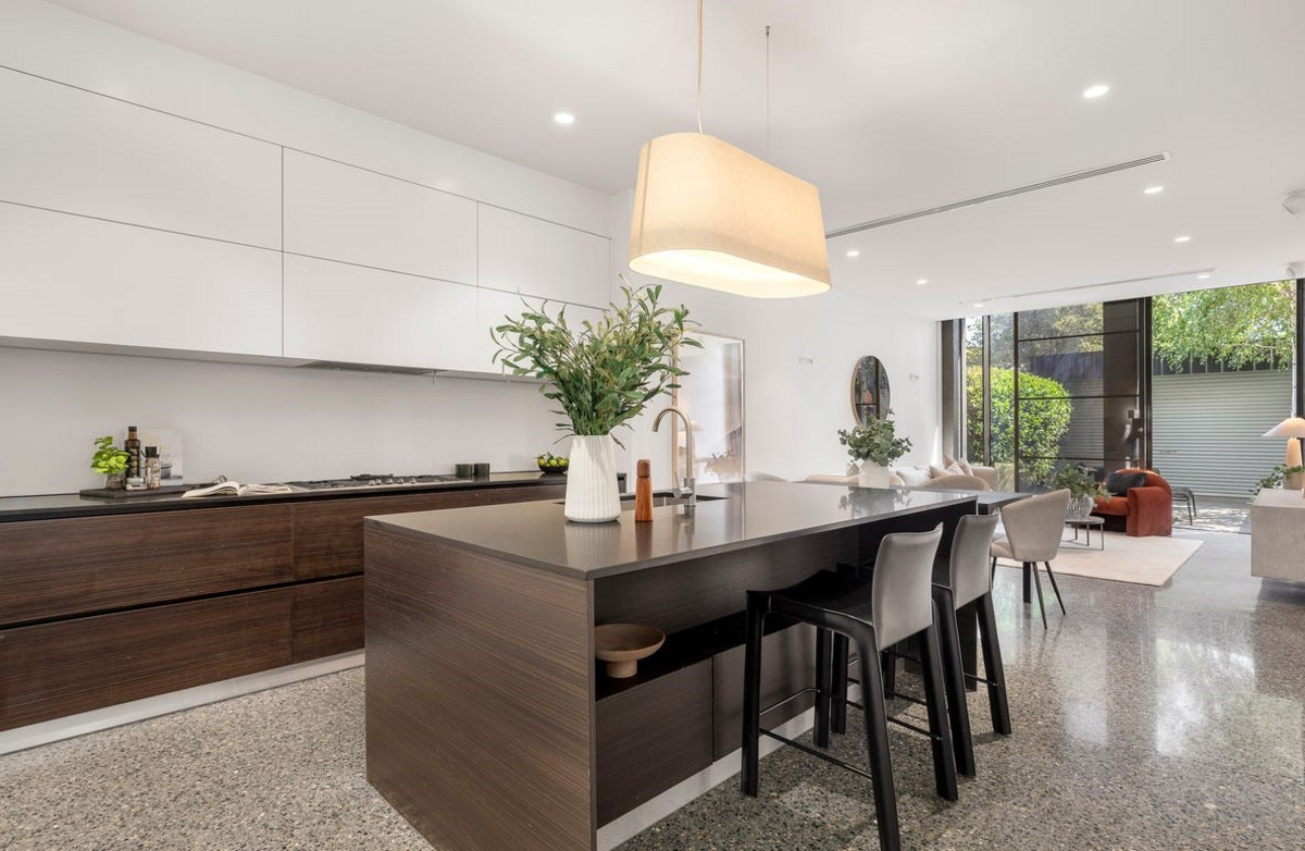 Completely renovated, this attractive Victorian residence delivers high-end contemporary living in an ultra-convenient location. Designed to maximise space and light, the home seamlessly blends elegant herringbone timber flooring with sleek polished concrete finishes. The ground floor features an immaculate kitchen with island bench, black granite benchtops, Miele appliances and an integrated fridge/freezer, flowing effortlessly into the open-plan, light-filled living and dining area. Making the most of its preferred norther aspect, a generous outdoor patio provides the ideal setting for alfresco dining and entertaining. The elegant main bedroom suite enjoys its own private sun terrace, built-in robes and a luxurious ensuite with large vanity and bath. The first floor also accommodates a second bedroom with built-in robe and balcony, along with a stylish central bathroom. Additional highlights include a versatile ground-floor third bedroom or home office with bespoke cabinetry, laundry, third bathroom, storeroom, rear right-of-way access and space for off-street parking. Beautifully presented with luxury appointments throughout, this superb home offers exceptional modern lifestyle appeal just moments from High Street and Chapel Street dining and shopping, Prahran Station, trams and local parks.