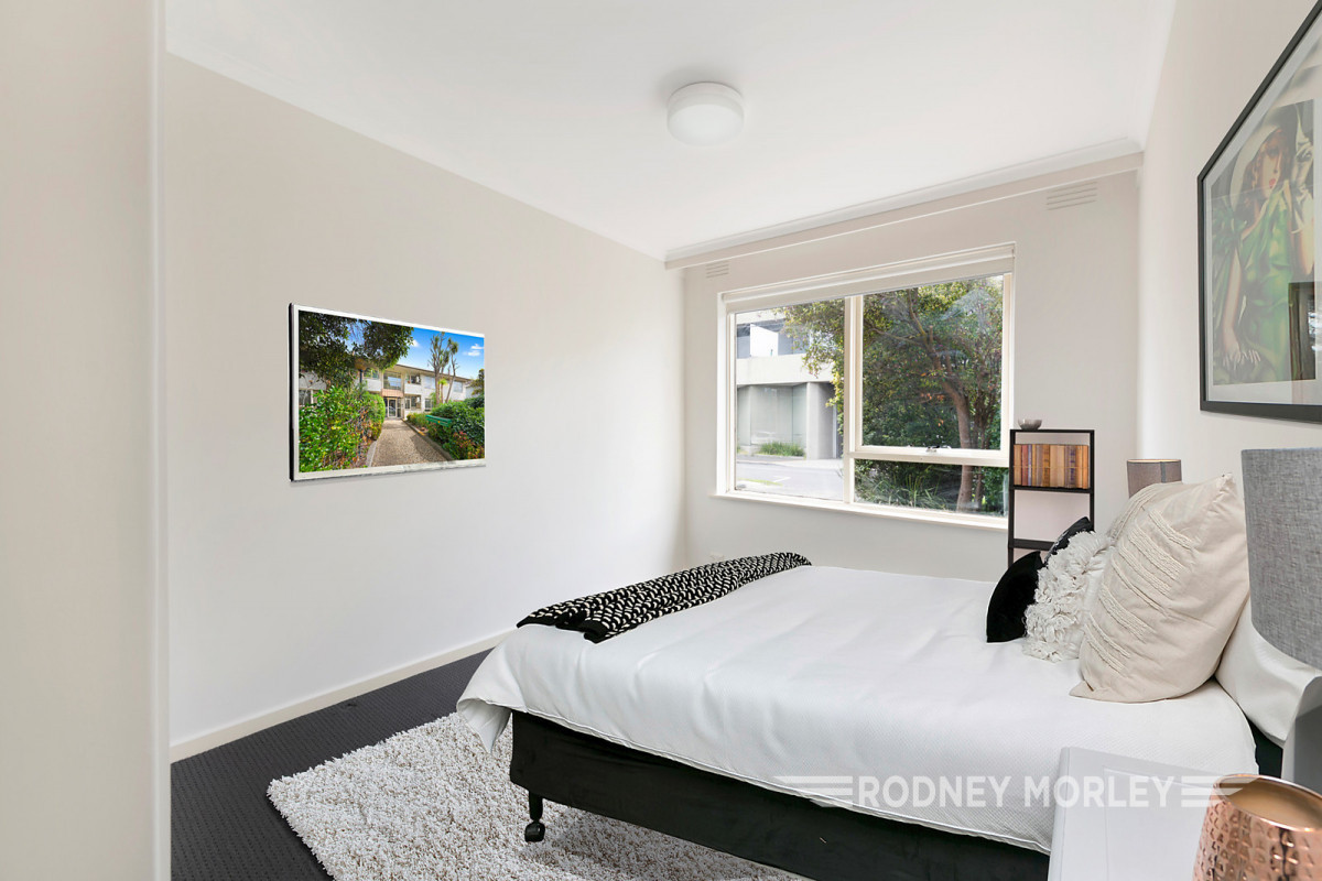 This ground floor solid brick solid apartment is one of only 6 in the block and is located close to Caulfield Park, schools, shops and transport. It offers a security entry building, sunny kitchen with breakfast bar, open plan lounge / dining leading onto a balcony, 2 double bedrooms both with built in robes and a central family bathroom with a separate toilet. Euro laundry, split system heating and cooling and a car park adjacent to the unit complete the picture! Be quick – this one won’t last!!