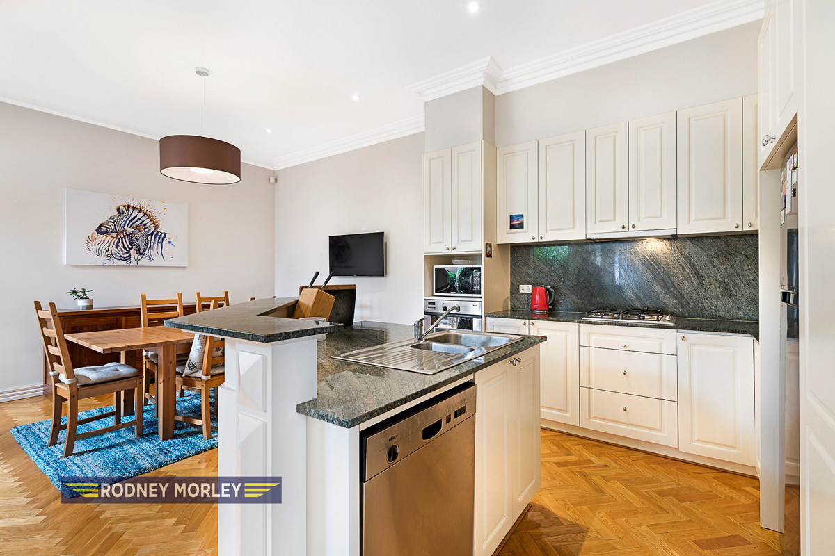Thoughtfully appointed with quality finishes and modern conveniences, this home features parquetry floors, zoned ducted heating and cooling, alarm system, video intercom, and an abundance of cleverly integrated storage. The north-facing paved courtyard provides a sunny, private retreat, while the remote garage adds further practicality.