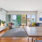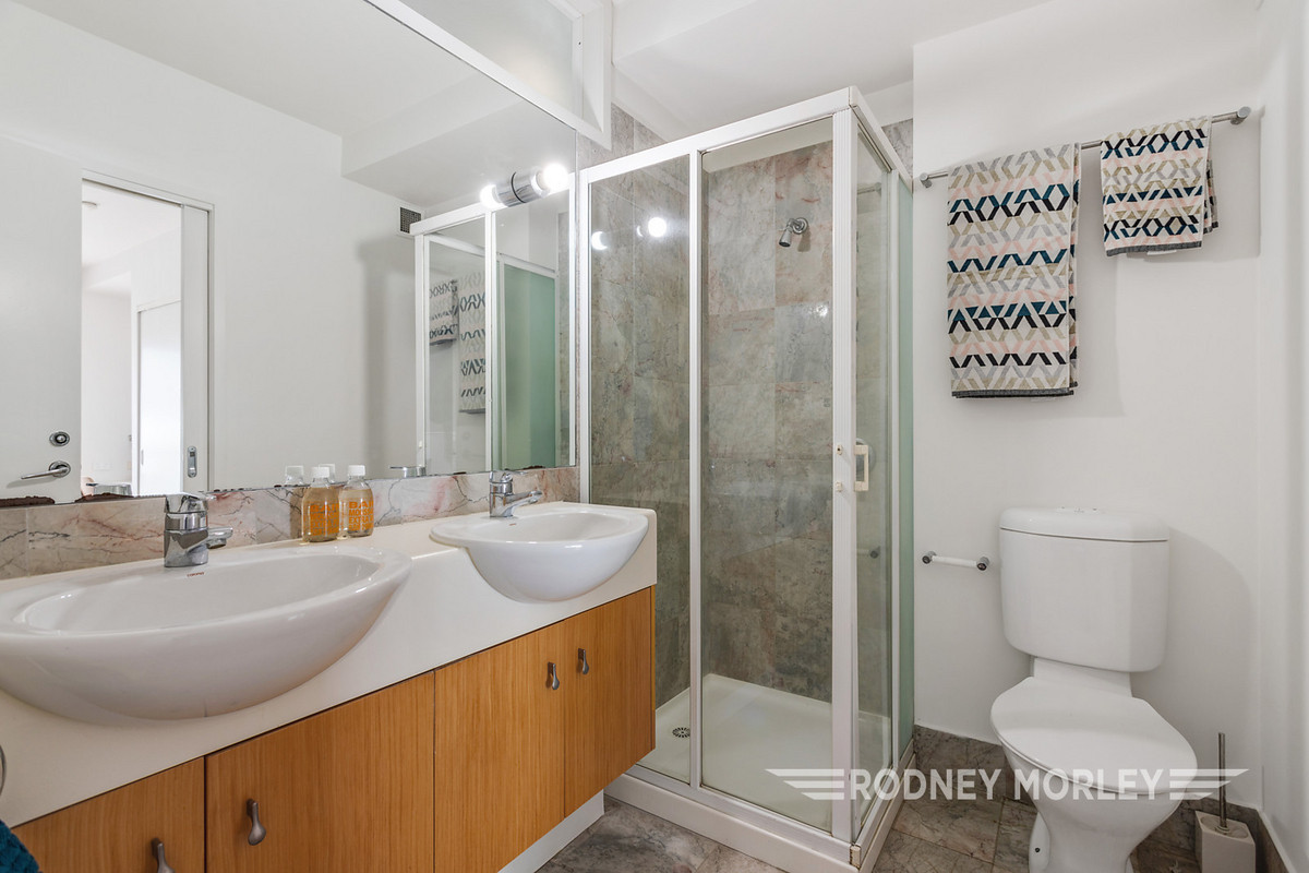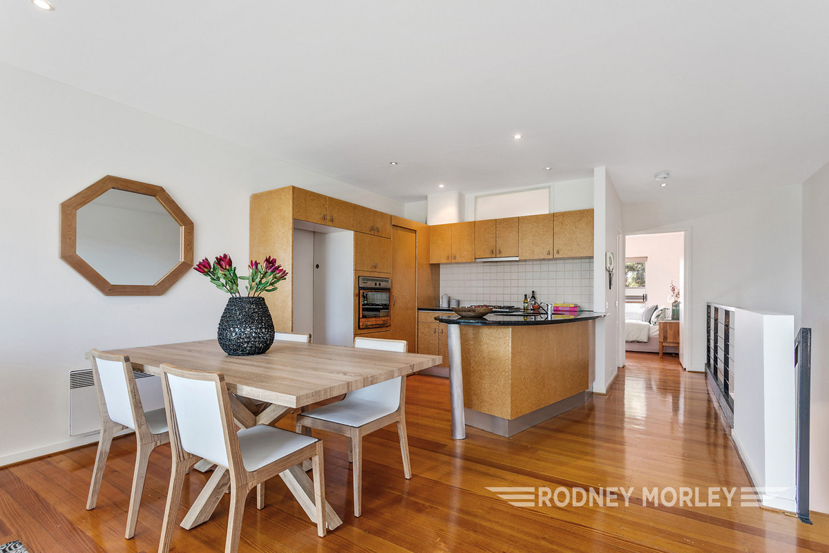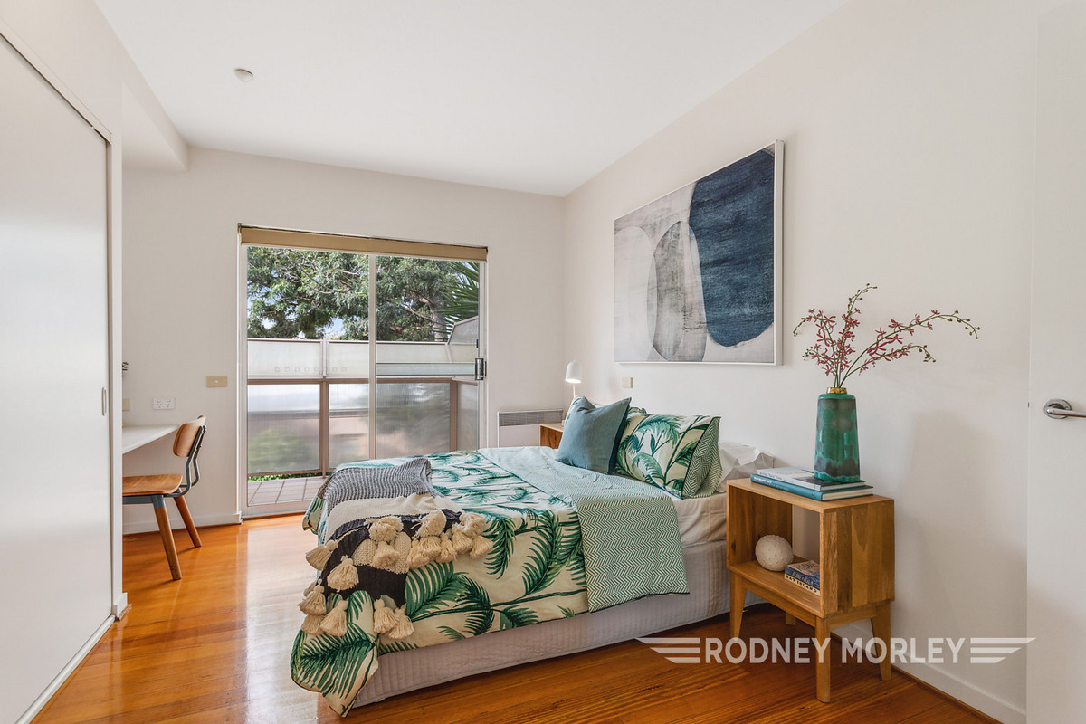 Architect designed in the 90s, this contemporary abode enjoys a wide entry with timber floors, a spacious bedroom (BIRs) opening onto an idyllic tropical courtyard garden with paved alfresco area; 2nd double bedroom (BIRs and desk) overlooking the Elwood Bridge and glorious beachfront parkland; a marble look bathroom and a separate laundry. Upstairs features a fabulous open plan entertaining area with solid timber floors and a sandstone balcony terrace taking in the magical bay views; funky granite kitchen (Bosch appliances), main bedroom (BIRs & desk) with private balcony and a marble-look semi ensuite.